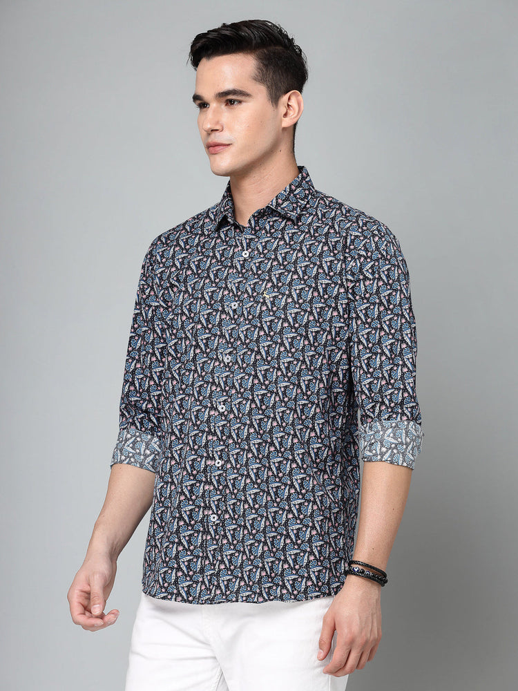 Valbone Men Abstract Printed Giza Cotton Casual half sleeves Shirt
